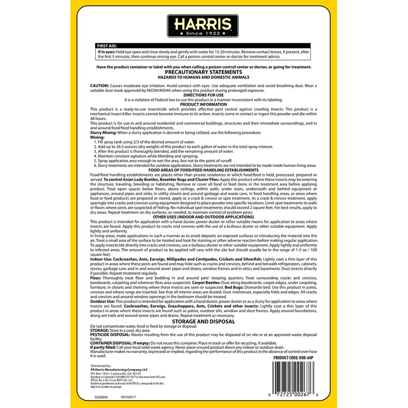 - Fast Acting - Insects coming into contact with the powder will die within 48 hours of initial contact
