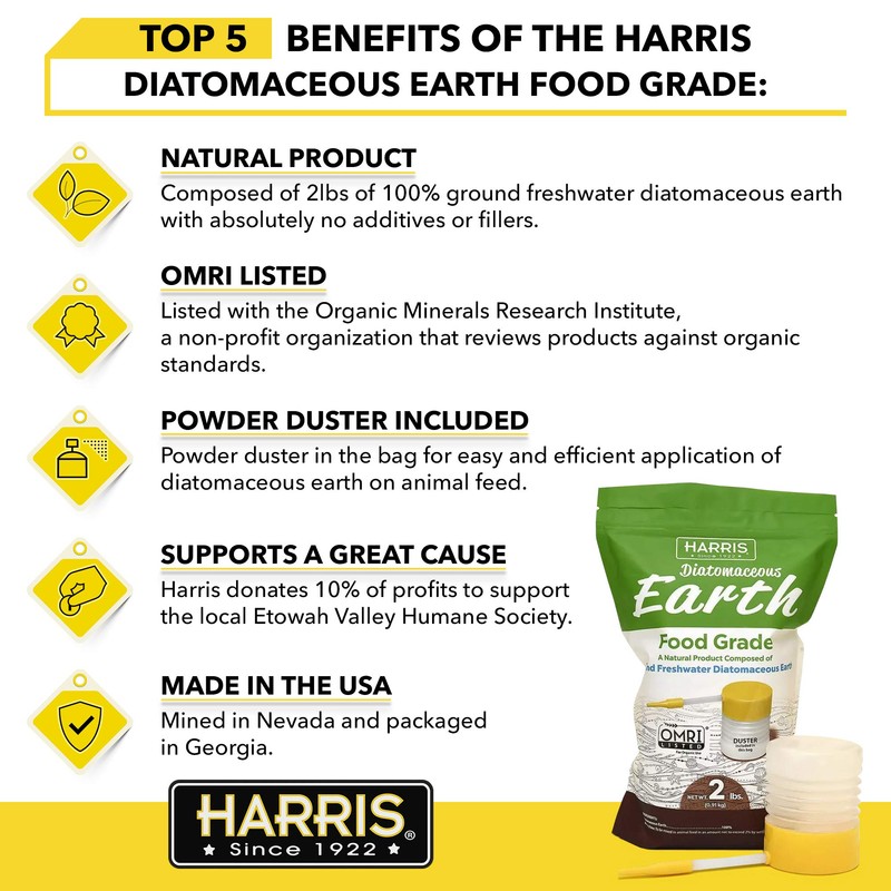 HARRIS Diatomaceous Earth Food Grade, 2lb with Powder Duster Included in The Bag