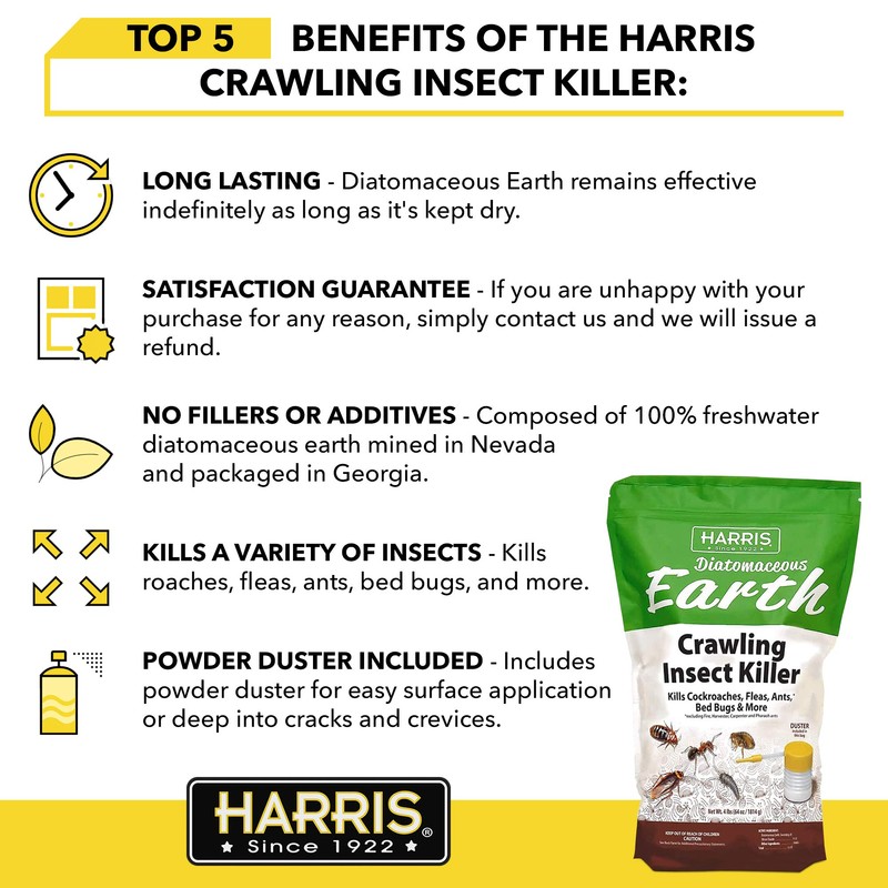 Harris Diatomaceous Earth Crawling Insect Killer, 4lb with Powder Duster Included Inside The Bag
