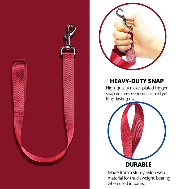 - EASY-TO-USE: Simply run the snap through the loop end to secure. Overall length 22'', user-friendly and great for hanging water buckets on a wooden fence, hay nets from stall bars, feeders in the barn or in your horse trailer.