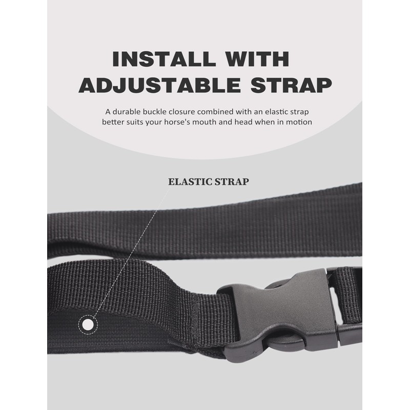 • INSTALL WITH ADJUSTABLE STRAP: A long-lasting buckle closure combined with an elastic strap better suits most horse's mouth and head when in motion, the bag draws in as the feed is eaten by the horse without causing any discomfort. Not easy to fall off once fixed in place.