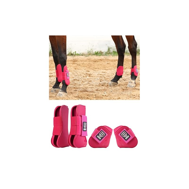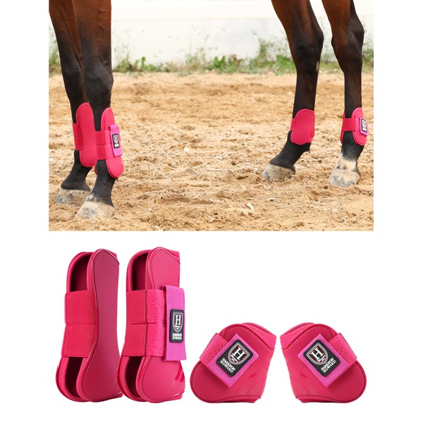 Harrison Howard Horse Tendon Boots Open Front/Fetlock Boot for Horse Protective Boots for Jumping, Trail Riding Set of 4 Hot Pink L