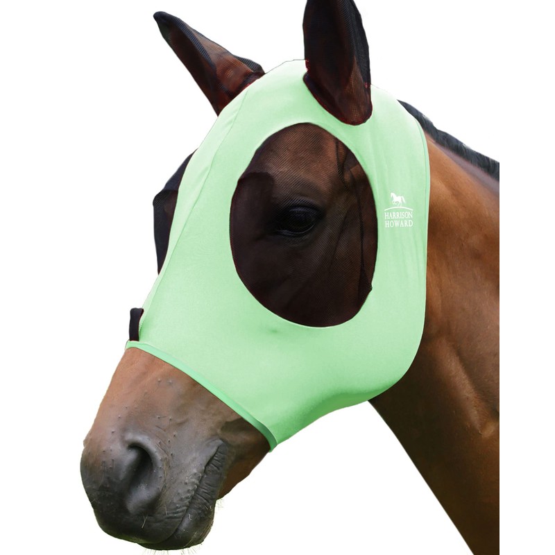 Harrison Howard Super Comfort Stretchy Fly Mask Large Eye Space with UV Protection Soft on Skin with Breathability Cool Mint XL Extra Full Size
