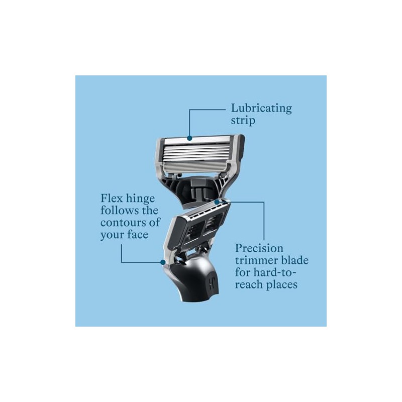 - A GREAT SHAVE: Our men's shaving blade is designed with a flex hinge, lubricating strip, and precision trimmer for hard-to-reach spots. Our blades' box keeps your razor blades in optimal condition until you are ready for shaving.