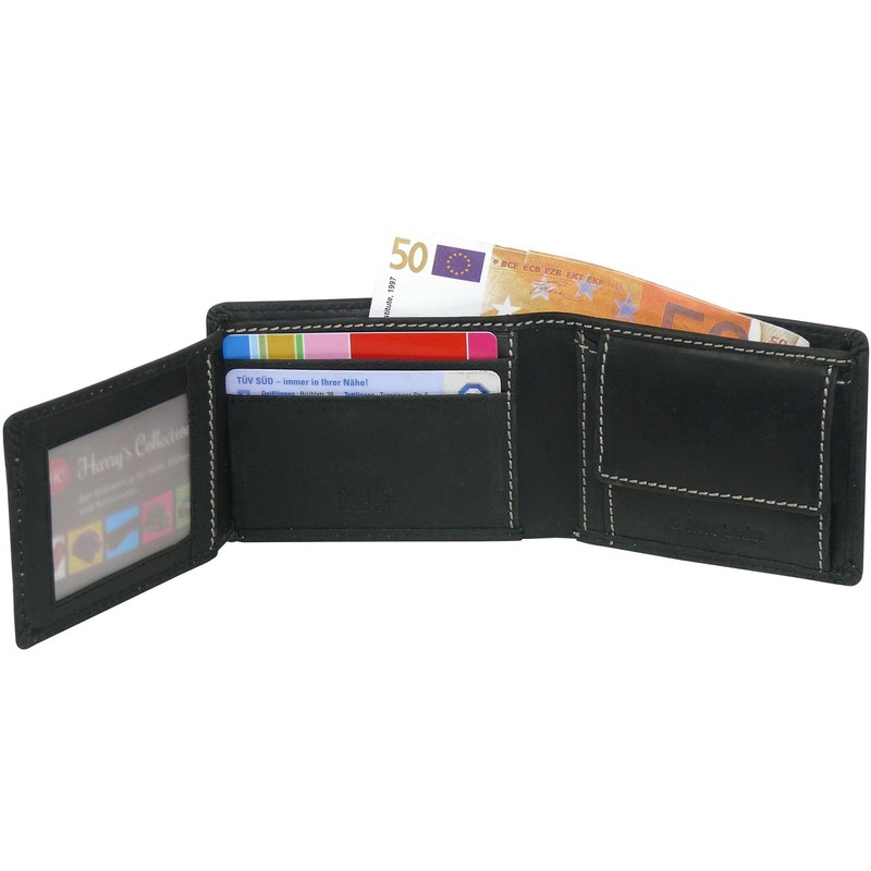 Harrys-Collection Very robust genuine leather wallet in vintage look with RFID protection, black, purse