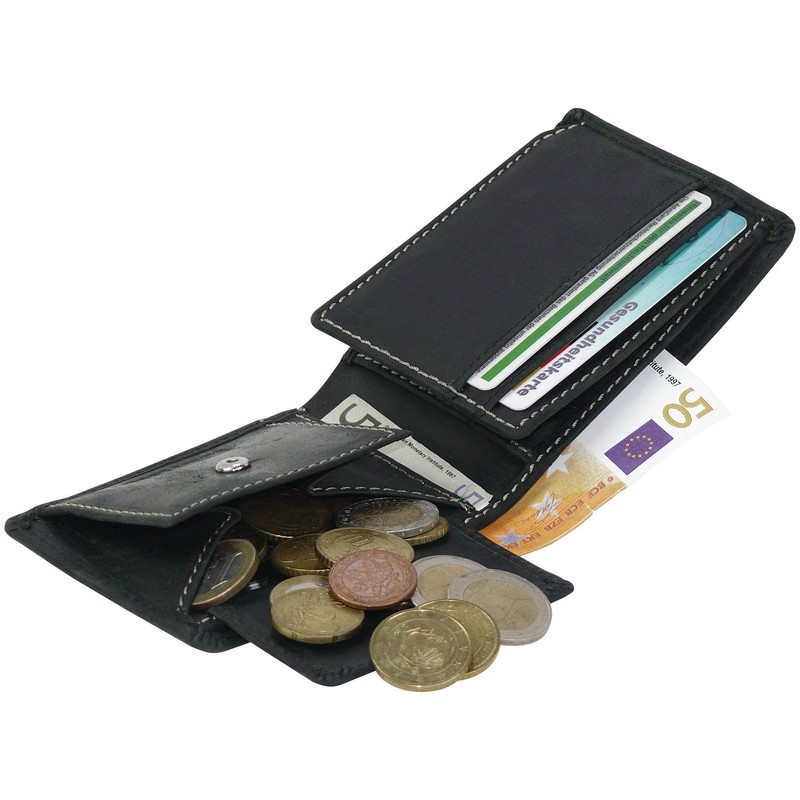 - Robust high-quality leather wallet in used look. Landscape format, with plenty of space for cards etc.