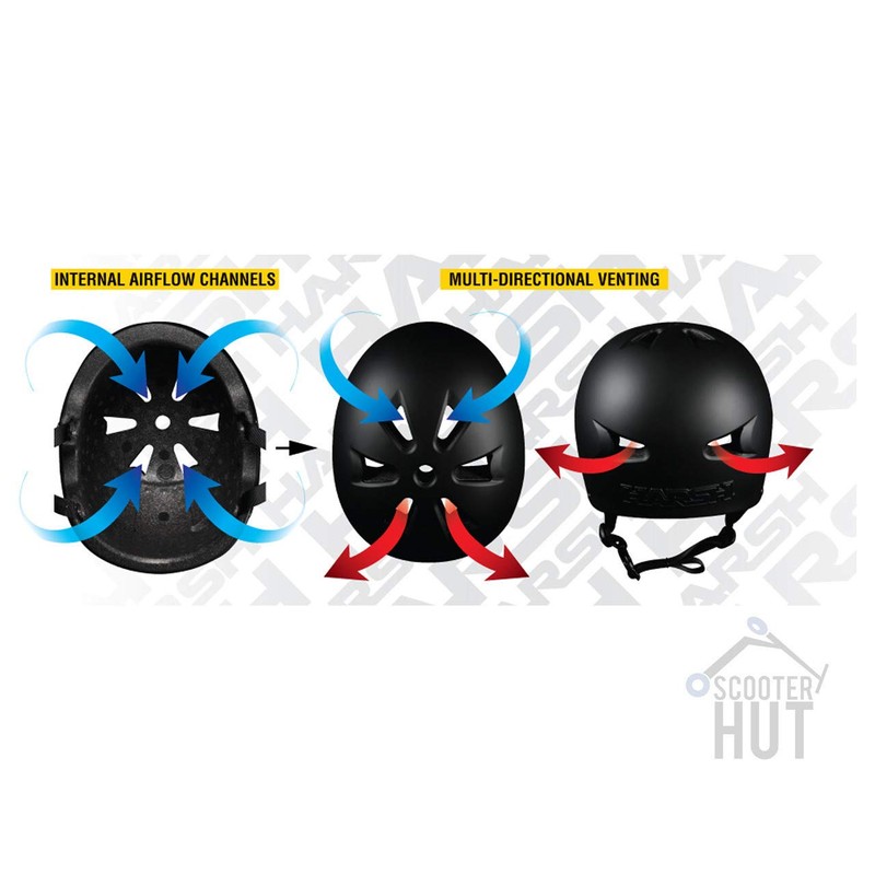 Globally certified inc CE EN 1078 Airflow optimised venting with internal venting channels Durable overmold construction Signature embossed Harsh logo Lightweight and low profile design
