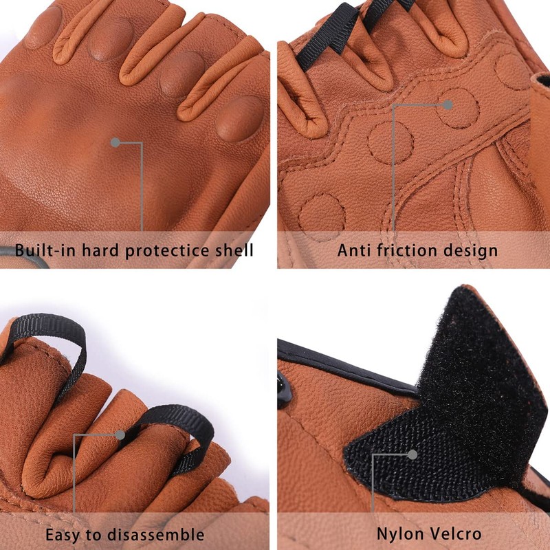 - [Outside--Comfortable and Premium durable Leather ]:The Womens Fingerless leather motorcycle gloves is made of the soft goatskin leather.