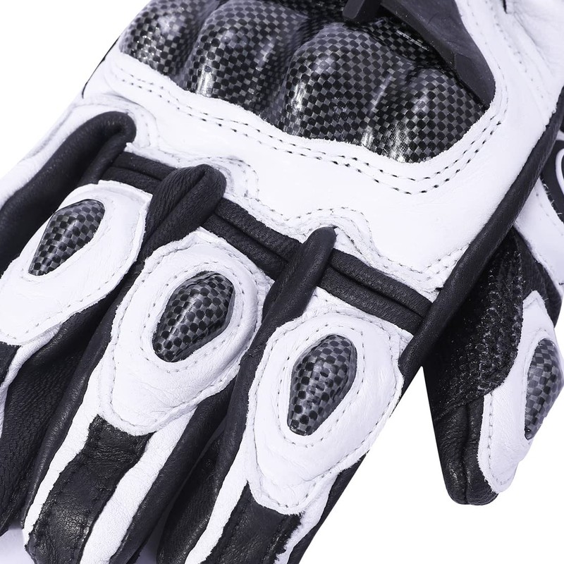 Harssidanzar Men Motorcycles Gloves,Genuine Leather Full Finger Motorbike Riding Powersports Knuckle Protection Road Racing Gloves KM046,White/Black, Size L