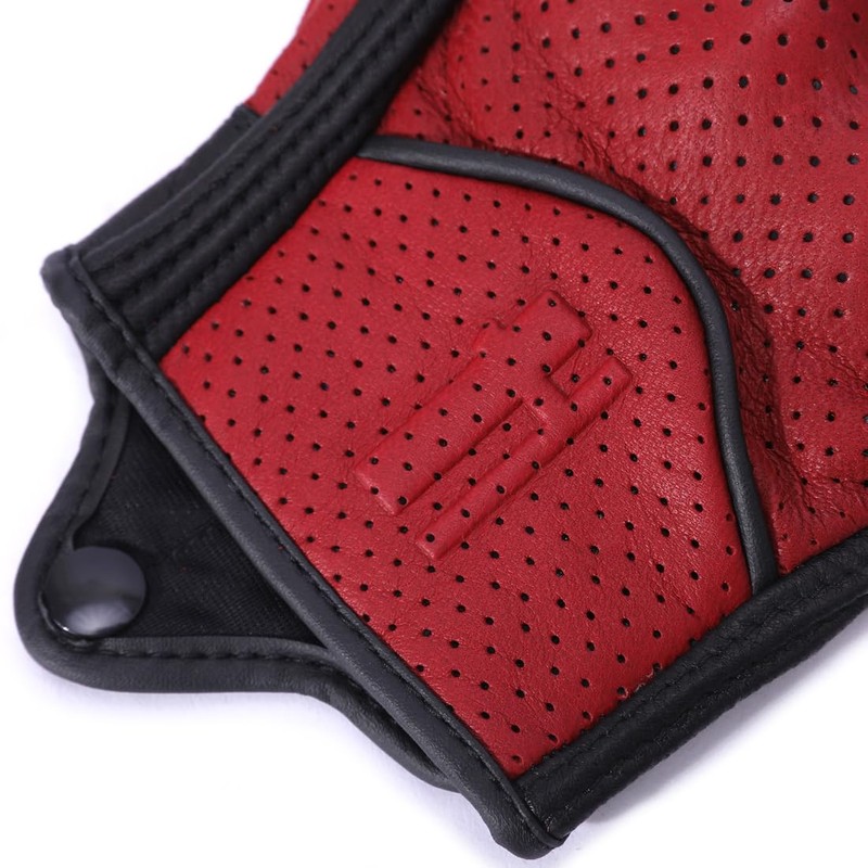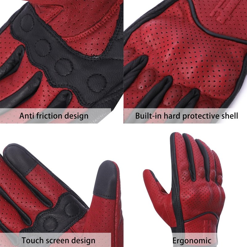 Harssidanzar Men's Motorcycle Gloves Goatskin Leather Full Finger Breathable and Perforated Design Touchscreen Summer Motorcycle Gloves CM043EUA, C2-Red, Size S