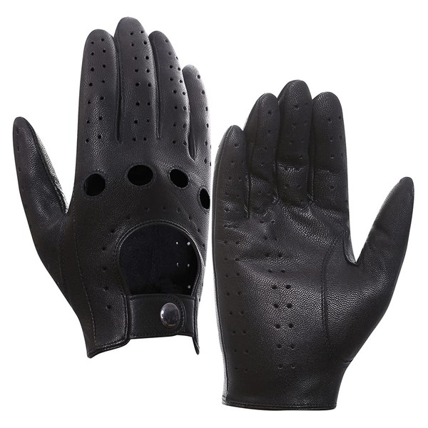 Harssidanzar Mens Leather Driving Gloves Goatskin Unlined, Black, M