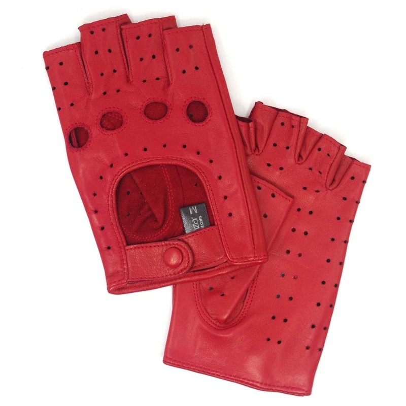 Harssidanzar Women Fingerless Driving Gloves,Womens Lambskin Leather Fingerless Gloves Unlined Half Finger Driving GL012,Red,Size L