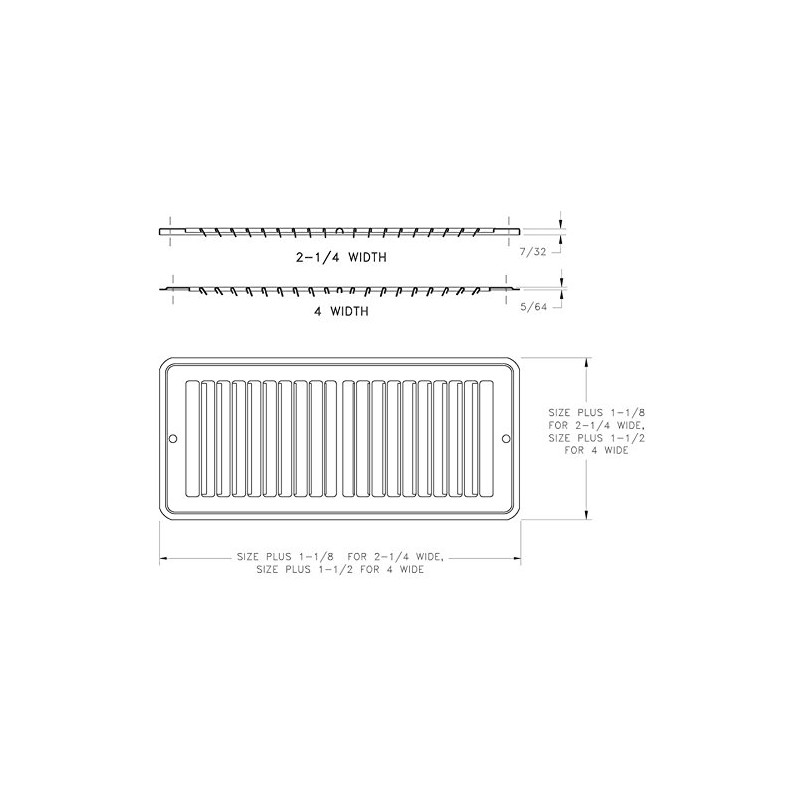 Designed to Fit 10" x 2-1/4" Hole, Overall Dimensions are 11-1/8" x 3-3/8", All-Steel Construction, Heavy-Gauge Stamped Face, Multi-Angle Fins, Bright White Finish