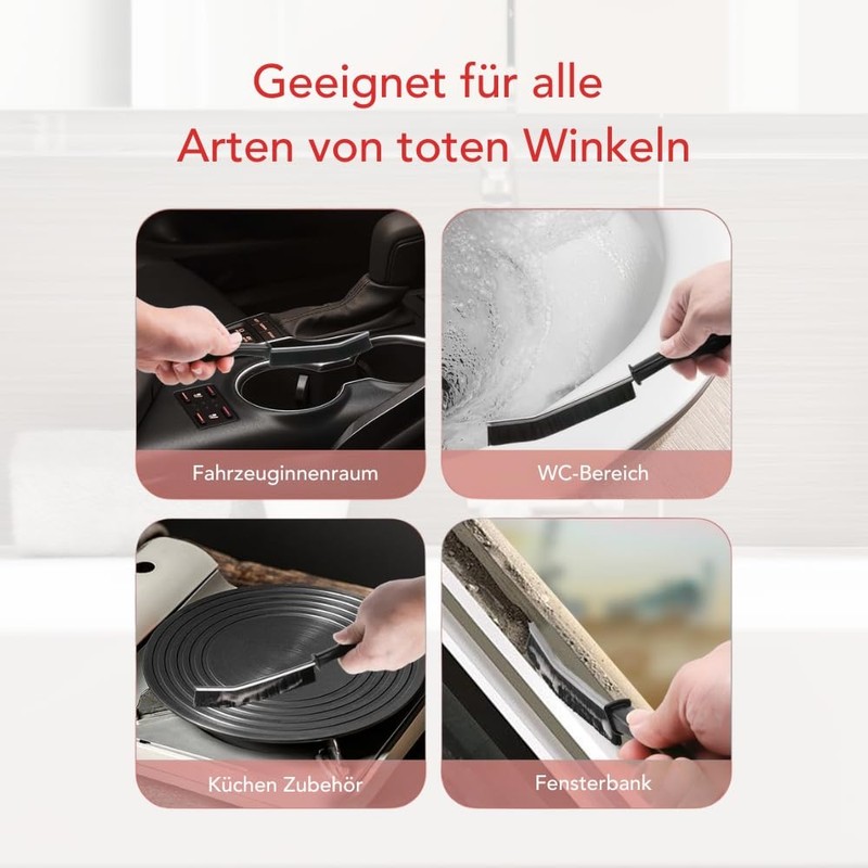 - 🧩 【Vielseitig einsetzbar – für Haushalt, Auto & mehr】 Diese Fugenbürste eignet sich ideal für verschiedenste Reinigungsaufgaben: Fugen, Fensterführungen, Armaturen, Herdplatten, Waschbeckenumrandungen, Kühlschrankdichtungen oder auch Lüftungsschlitze im Auto. Dank ihres schmalen Designs kommt sie überall dorthin, wo andere Bürsten versagen. Ein praktisches Multitalent für den gesamten Haushalt.