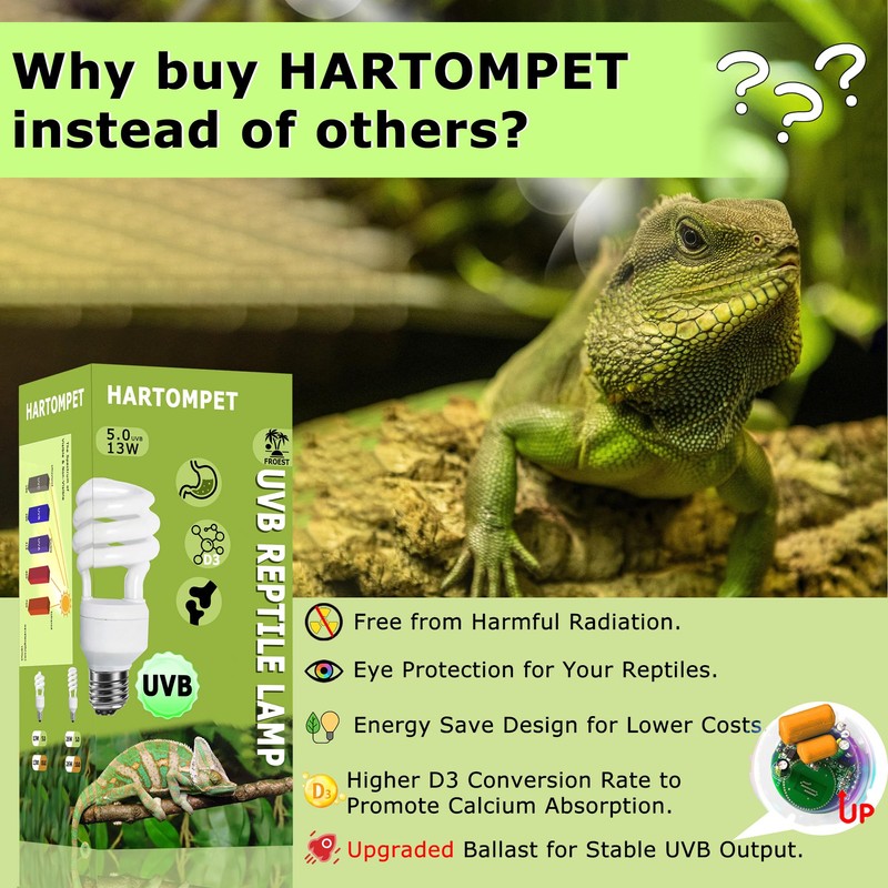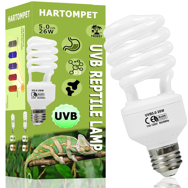 HARTOMPET 5.0 UVB Reptile Light 26W, Compact Tropical & Sub-Tropical Lamp,Coil UVB Bulbs, UVA Fluorescent Bulbs for Amphibians, Chameleons, Iguanas & Turtles, Small Pets, Reptile Tank Lighting