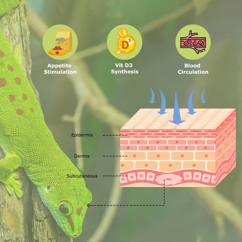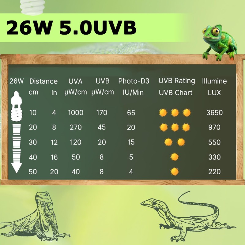 - Promotes Reptile Health - UVB output stimulates the production of vitamin D3 in reptiles, aiding in bone growth, calcium absorption, and enhancing natural physiological behaviors.