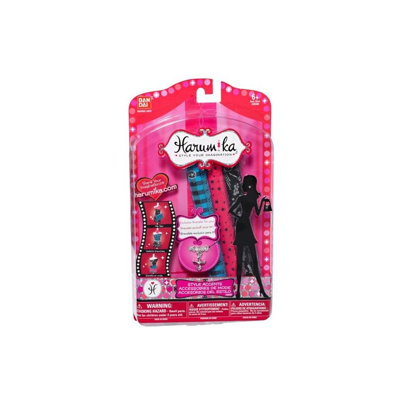 Design everything your way with these additional Harumika accessory packs. Each set includes 3 pieces of fabric that are connected to each pack's theme, adding more customising possibilities to your other Harumika sets. An exclusive collectable bracelet is also included, each one with a different Harumika charm. Mannequins not included. Harumika is quick and simple and doesn't require any sewing, glue, or scissors. The secret lies in the silicon strip on the back of each mannequin which holds fabric in place. Style Accents sets include 3 Harumika fabrics and a charm bracelet that can be used as a belt. Colours and styles may vary Suitable from 6 Years + Safety Information: Warning. Not suitable for Children under 3 years.