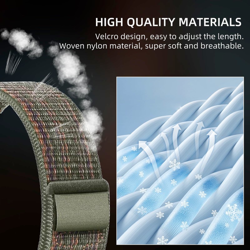 - Woven nylon material: bracelet is made of double-layer skin-friendly nylon material, the nylon fabric with two layers has dense mesh on the inside. Unlike smooth nylon materials, this woven nylon material has a better structure, which ensures better sweat wicking and breathability. Lightweight materials reduce the strain on your hands and do not affect movement or training do not fall off like other straps.