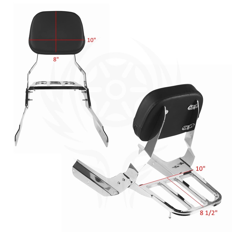 - Includes: Sissybar Upright / Side Plates / Luggage Rack / Pad / Necessary Assemble Bolts & Mounting Bolts/ Installation Instruction