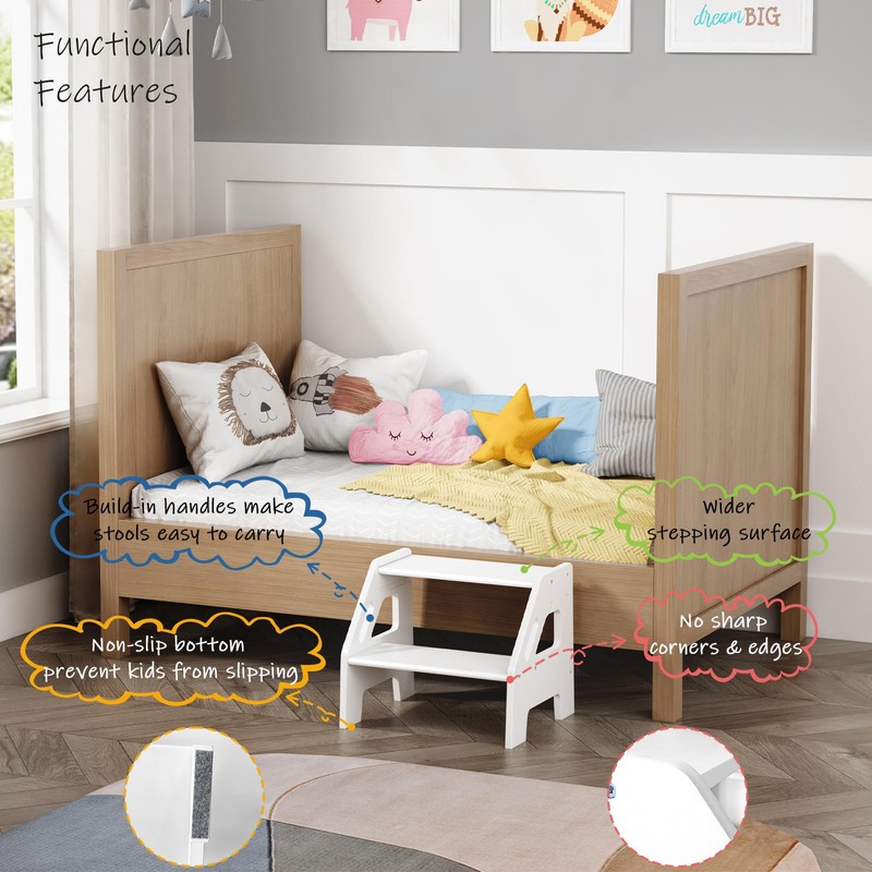 - 【Best Assistance for Toddlers】The 2 step stool for toddlers provides the best assistance for your growing toddlers. You can use toddler stool for potty training on the toilet or use for reaching bathroom sink to brush teeth and wash hands, and just about anywhere else that needs a little boost to reach by themselves.