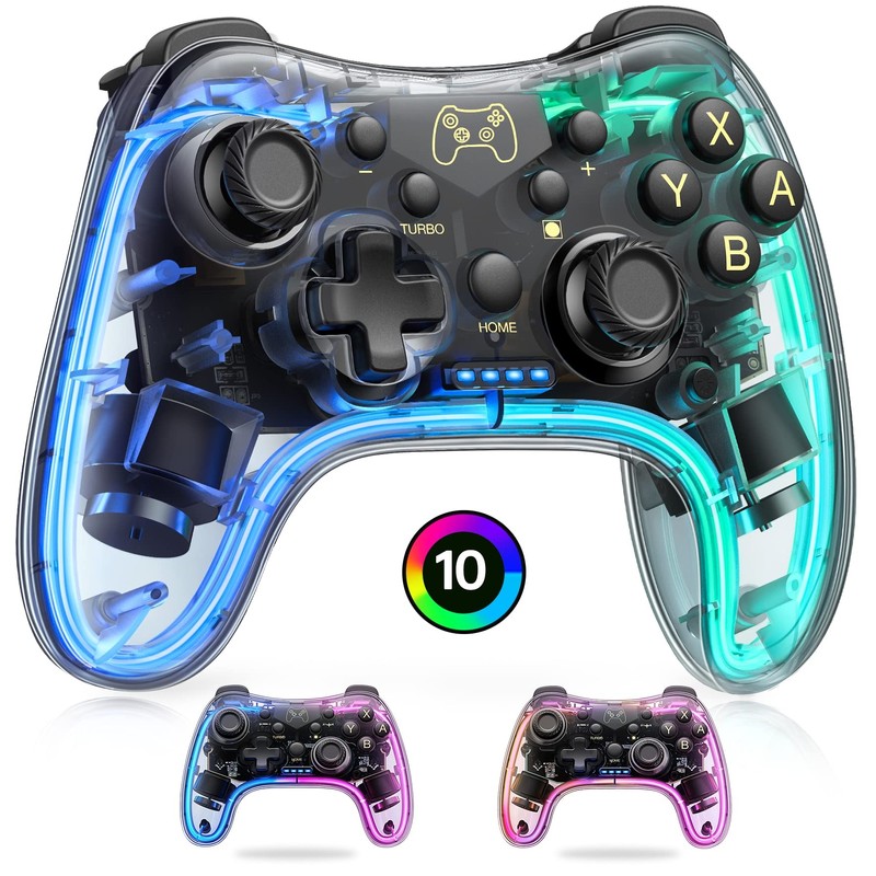 HASACOOL Switch Controller, Switch Pro Controller mit Transparent/Leuchtend/Aufwecken/App-Steuerung, Wireless Controller Kompatibel mit Android/IOS/PC, Controller Switch für Switch/Lite/OLED