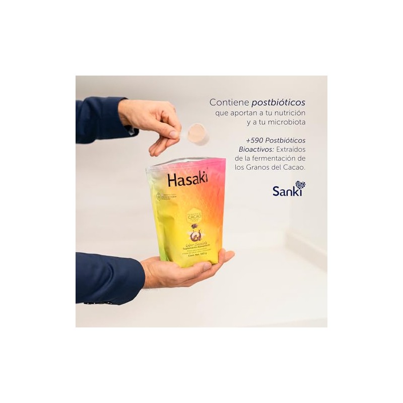 Hasaki Sanki - Suplemento Alimenticio con Postbiticos de Cacao, Protena, Probiticos, Vitaminas y Minerales, Vainilla, Flora Intestinal, 560 gr