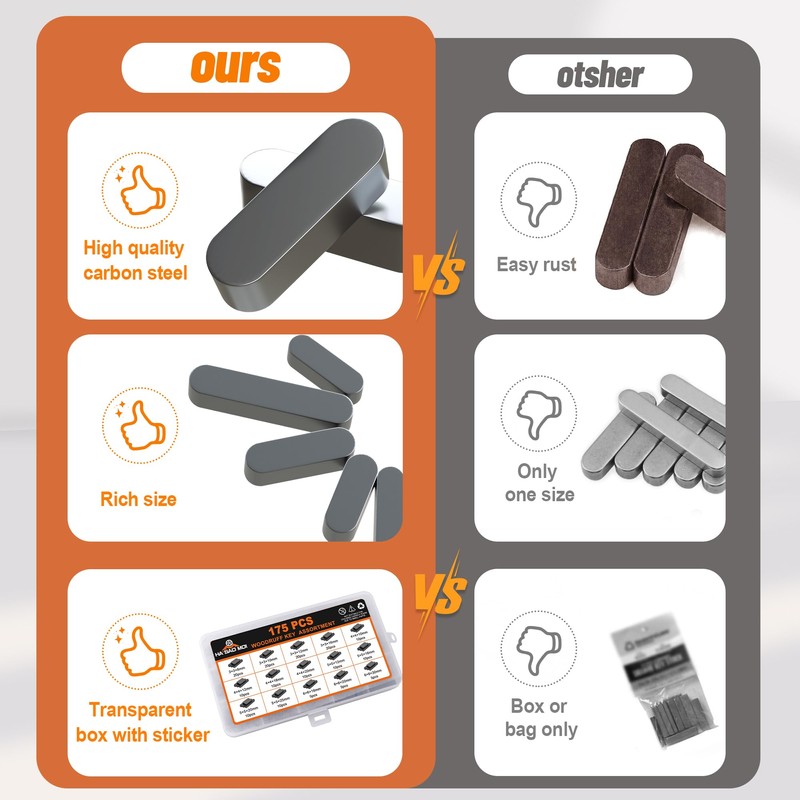 • GREAT VALUE : With 175 pieces in 15 different sizes, our Woodruff key stock assortment kit offers exceptional value for the price and is an essential addition to any tool collection