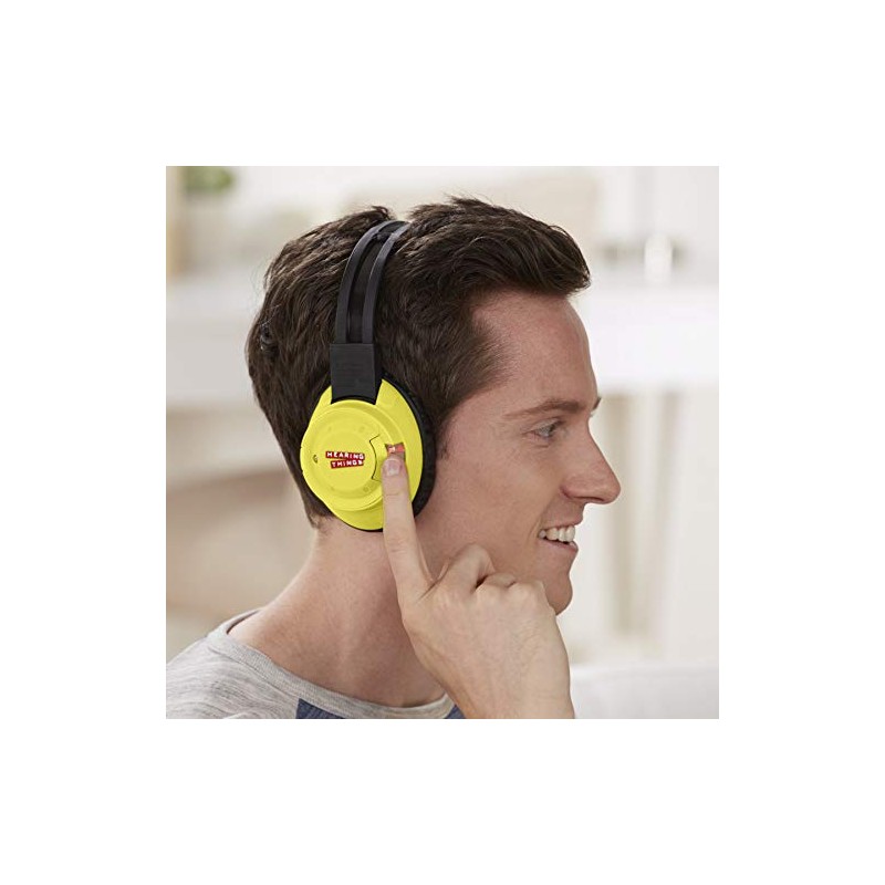 Who knows what's going to come out of your teammate's mouth? The Hearing things game, Hasbro’s twist on the online viral "Whisper Challenge" sensation has you guessing what you think your teammate is saying by reading their lips. One player puts on the speech-cancelling electronic headphones and the other player says the random phrase shown on the card such as, "Pigeons like to cuddle" or "You’re the champ of the camp ". The game headphones limit the player‘s ability to hear what their teammate is saying out loud, and the player has to figure it out to earn the card. The player with the most cards wins. The game comes with speech-cancelling electronic game headphones, and 150 cards with 600 phrases. Styles and colours may vary. Hasbro Gaming and all related terms are trademarks of Hasbro.