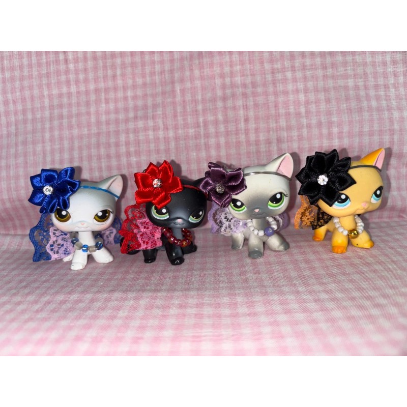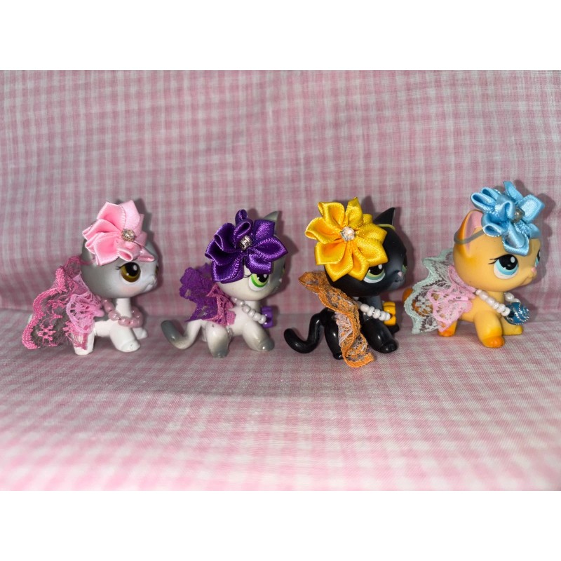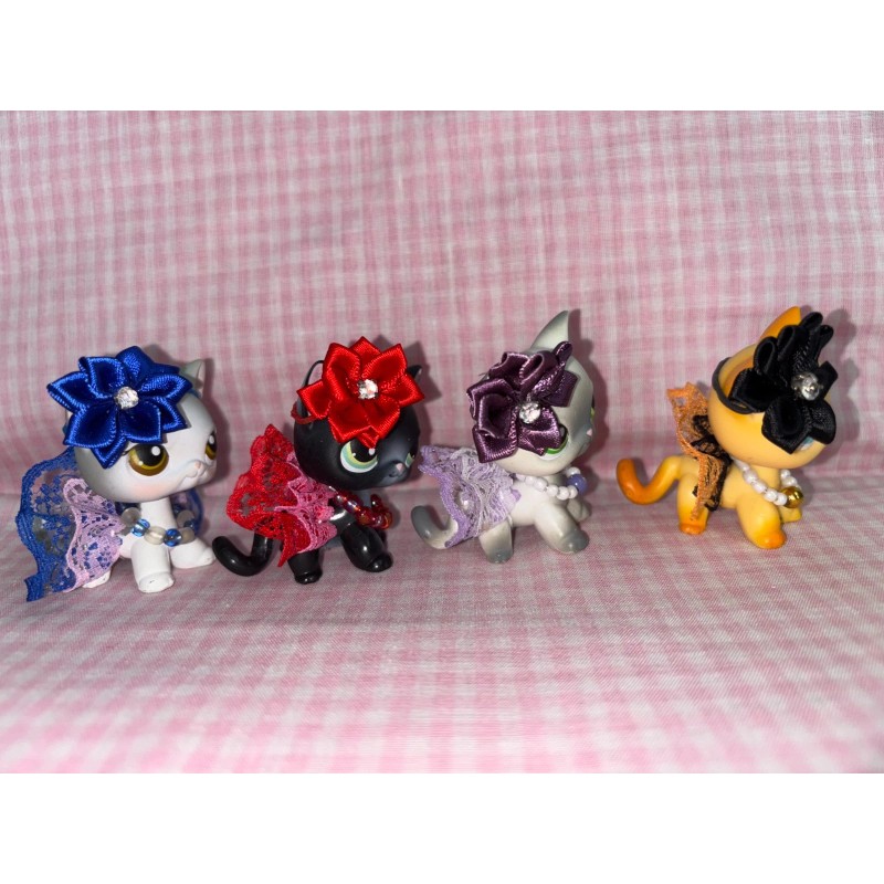 Suprise lot of Handmade 12 pc, 4 bows, 4 necklaces/collars and 4 skirts for Littlest Pet Shop pets, colors are randomly picked, grab bag.