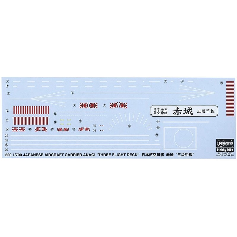 - This is the 1/700 scale Akagi "Three Flight Deck" Japanese Aircraft Carrier from the Water Line Series by Hasegawa. Suitable for Ages 14 & Up.