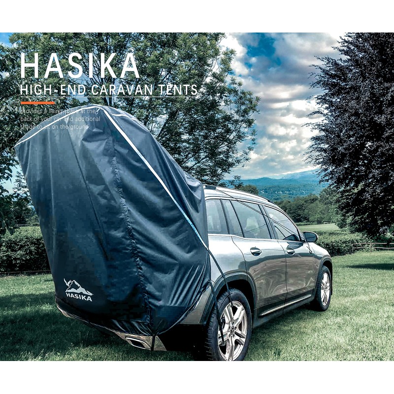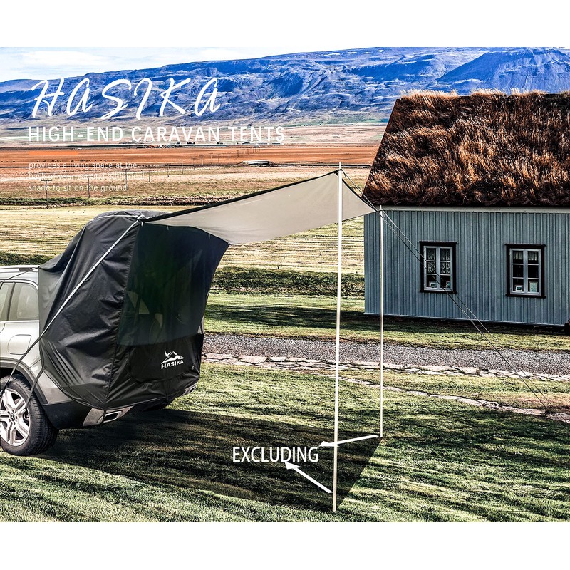 Hasika SUV Camping Tent Car Tailgate Shade Awning with Screen Net Waterproof 3000MM UPF 50+ Black (Large)