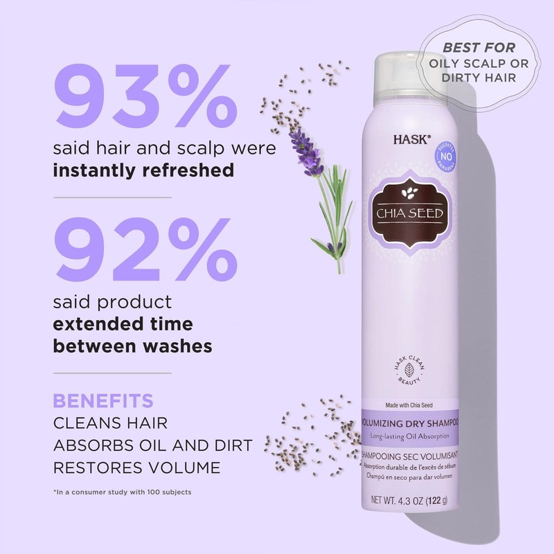 HASK, Shampoo en Seco, con Extracto de Semillas de Chía, Limpia sin Agua, Absorbe Grasa, Añade Volumen, Libre de Sulfatos, Parabenos, Ftalatos y Gluten, 122 g