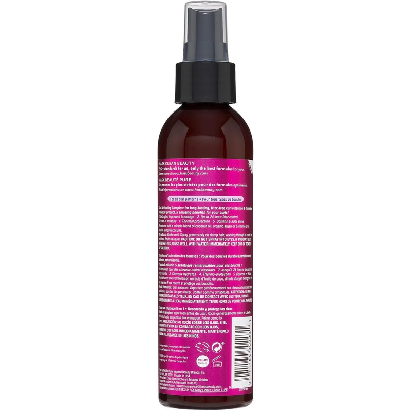 HASK, Spray para Rizos, 5 en 1, Anti-Frizz, Desenreda, Protege los Rizos, Libre de Sulfatos, Parabenos, Ftalatos y Gluten, 175 ml