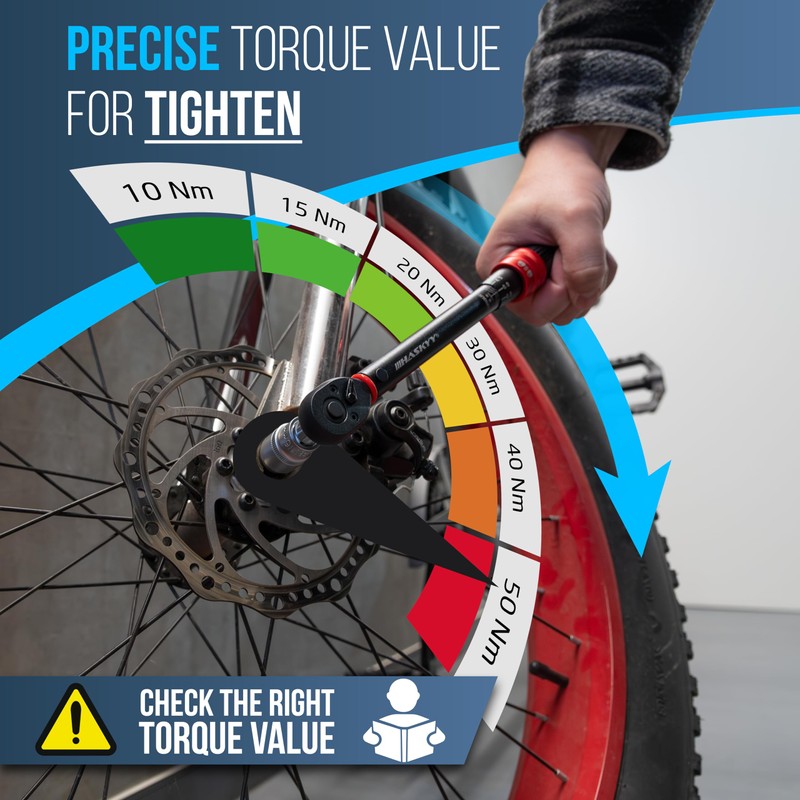The torque wrench has an adjustable range of 10-50 Newton meters (Nm), making it ideal for a variety of applications. By accurately adjusting the desired torque, you can ensure that bolts and nuts are tightened with the correct force to avoid over-tightening or understretching.