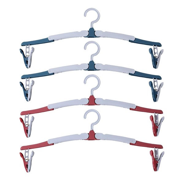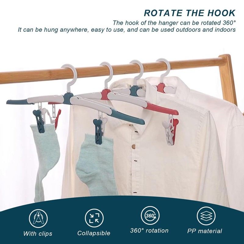 HASLED Pack of 4 Foldable Hangers with Clip - 360° Rotating Hook, Space Saving for Travel, Hotel and Camping (Blue/Pink)