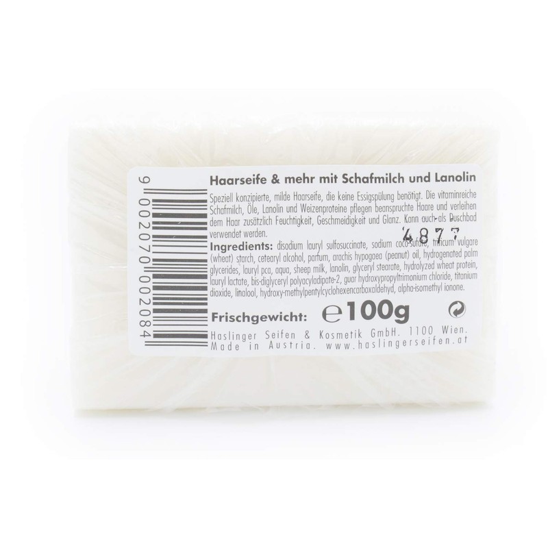 - The vitamin-rich sheep's milk, oils, lanolin and wheat proteins nourish stressed hair and give the hair additional moisture, suppleness and shine. The soap can also be used as a shower/bath soap.