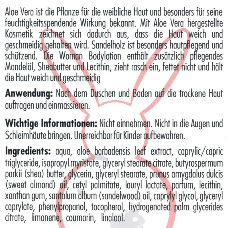 - Special pleasure: The Woman Body Lotion also contains nourishing almond oil. Shea butter and lecithin, absorbs quickly, does not grease and keeps the skin soft and supple.