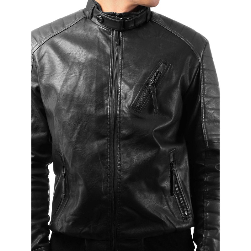 Hat and Beyond Mens Premium Faux Leather Jacket Motorcycle Rider Outerwear with Tactical Pockets
