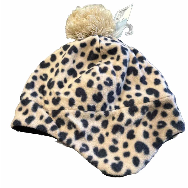 HaT Cat & Jack Kid Girl Cozy Soft Fleece Leopard Print Pom Beanie Hat Brown One Size
