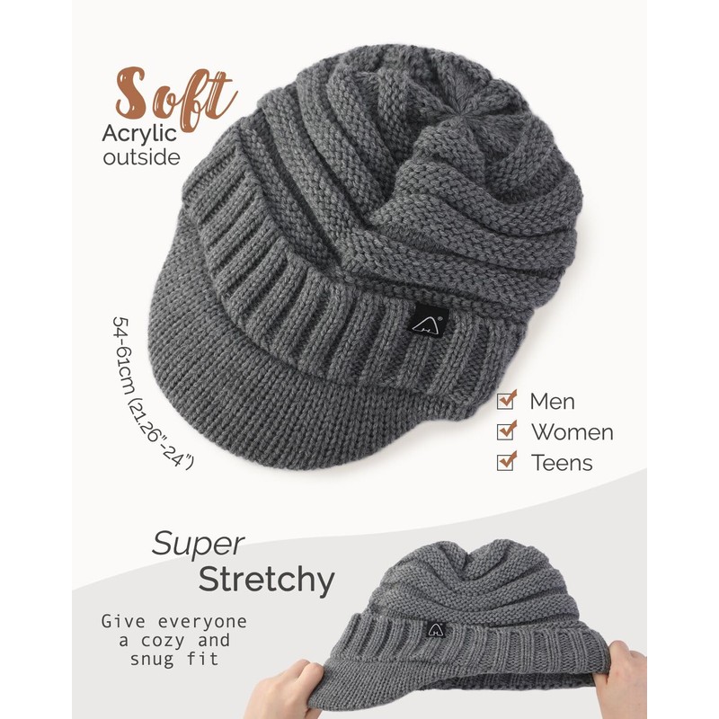 - 【Great for Many Occasions】No matter you are shopping, going to office, park or doing outdoor acrtivities like hiking, skiing or running, this visor beanie makes you warm and confident. This unisex beanie is also a great gift for men and women.