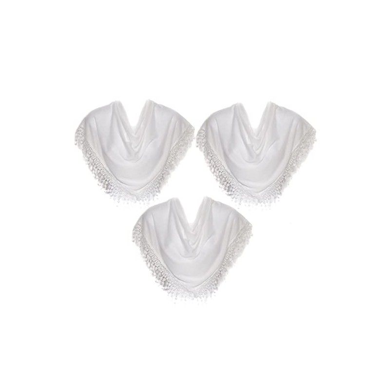Hat To Socks Triangle Scarf with Bobbin Lace Fringes for Women Pack of 3 (White)