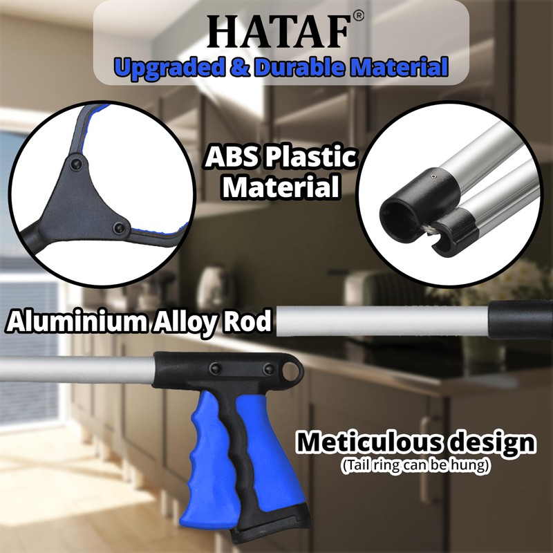 HATAF® 32inches Litter Pickers for Adults, Grabber Stick, Helping Hand Grabbers for Disabled, Foldable Litter Pickers for Children Rotating Head 360 Degree Reaching Aids (32" Blue)