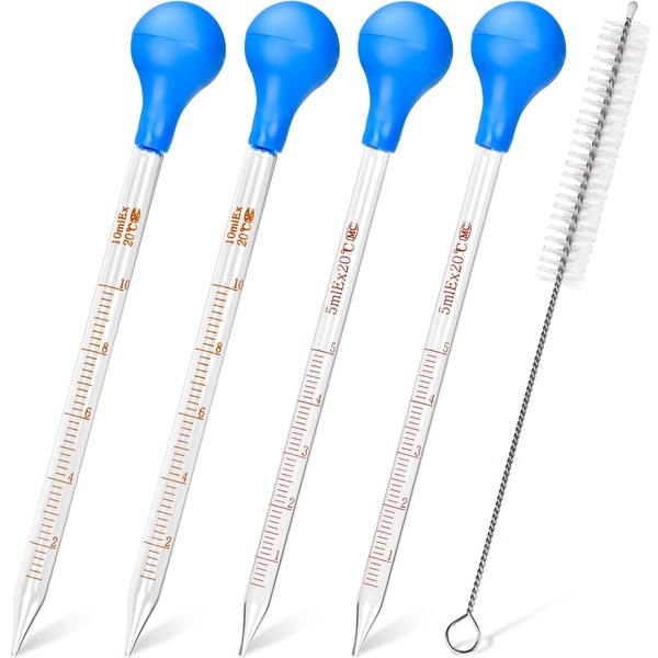 HATANSE 4 x Glass Pipettes Dropper, Drip Pipettes, Pipette Glass, Transfer Pipette, Glass Pipette, Measuring Pipettes, 5 ml 10 ml with Drop Brushes