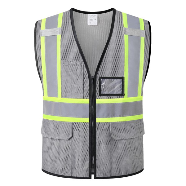 HATAUNKI Reflective Safety Vest for Men Women with Multi-Function Pockets and Front Zipper High Visibility Mesh Vest,Meets ANSI/ISEA Standards(Grey-33,3X-Large)
