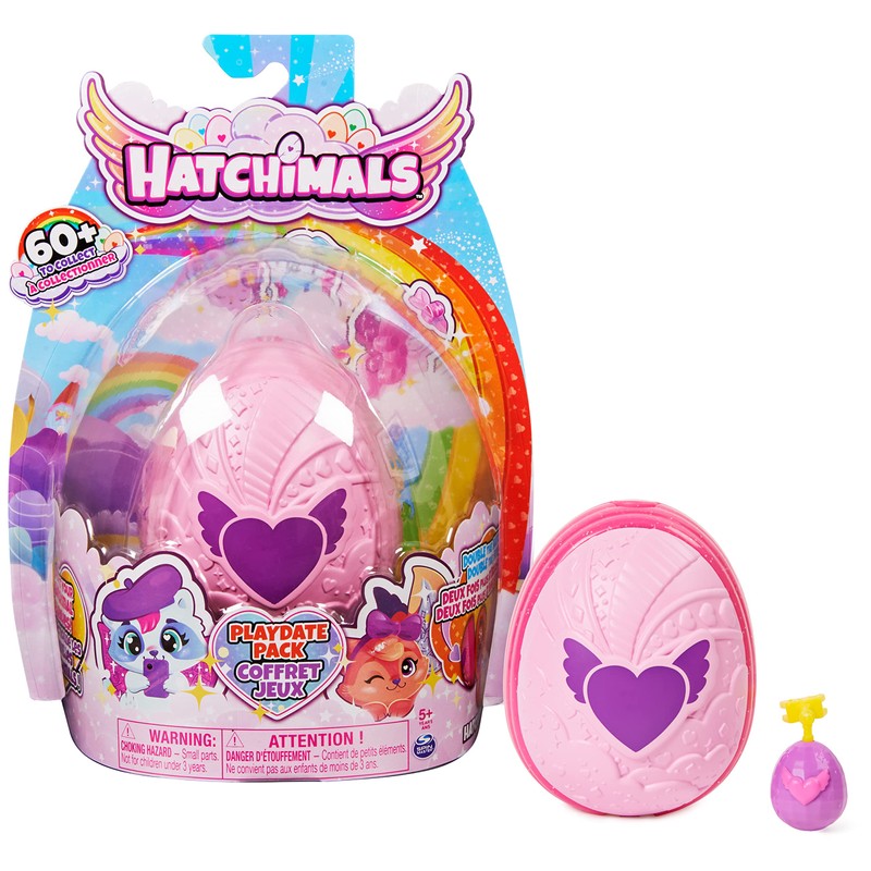 - EGG TRANSFORMS TO PLAYSET: The egg becomes a 2-story Hatchimals playset! Each Playdate Pack has a unique scene, like a spa, movie theatre, roller rink, ice cream shop and more. Create the perfect playdate!