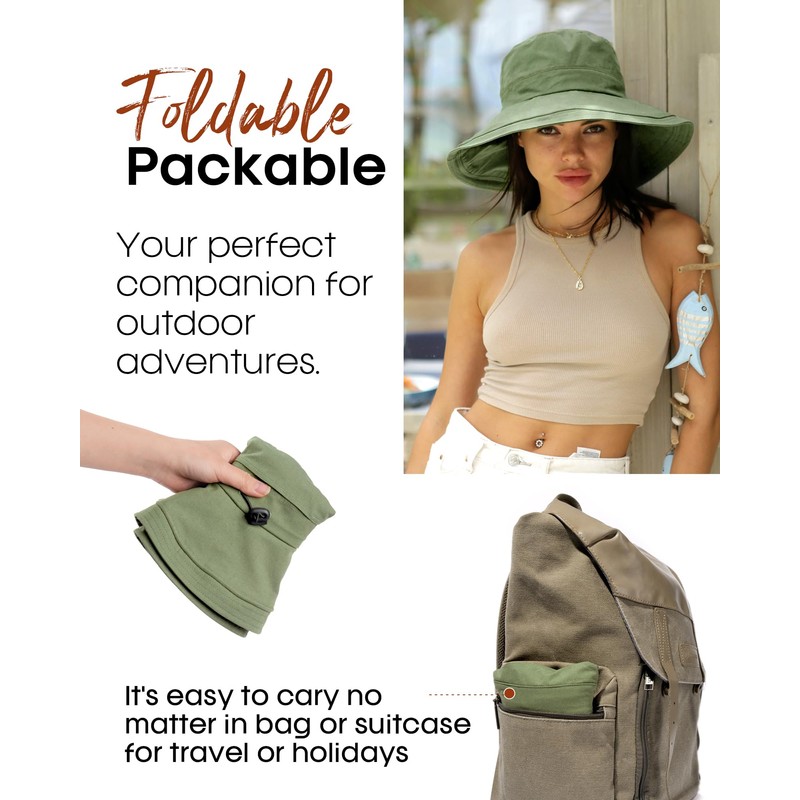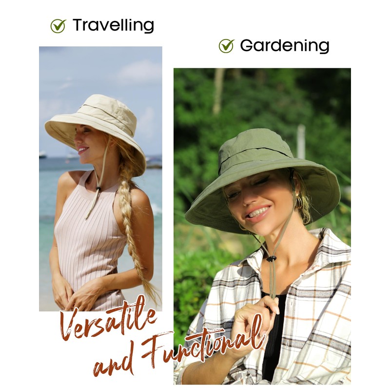 - Unique Design: Womens sun hat has a setting wire at the brim, you can change the brim into any style you want; Wide brim sun hat match with a detachable windproof cord of the same color, it can be firmly worn on the head even in windy days;