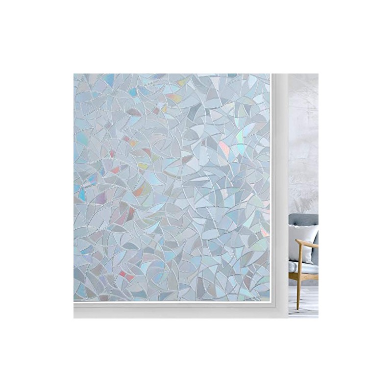 Haton Window Film Privacy One Way Window Cling, 3D Decorative Glass Film, Daytime Privacy Window Decal Heat UV Block Window Cover, Static Cling Window Sticker, Grayish Silver, 35.4 x 78.7inches