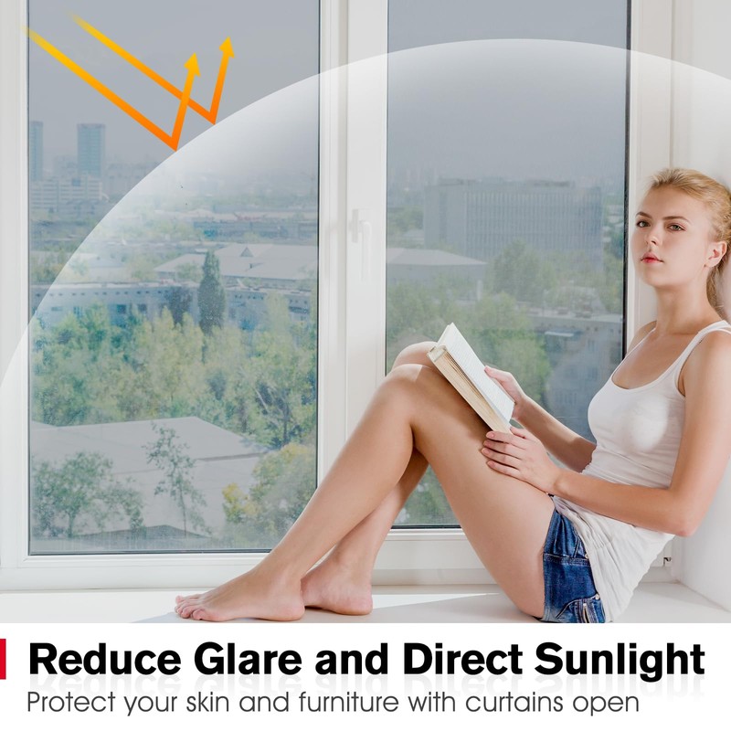 - UV Protection & Anti-Glare: Embrace a safer and more vibrant living space. This sun blocking window film efficiently blocks 90% of harmful UV rays, safeguarding your furniture, floors, and decor against premature aging. And the film significantly cut down harsh glare, boosting your TV or computer viewing pleasure