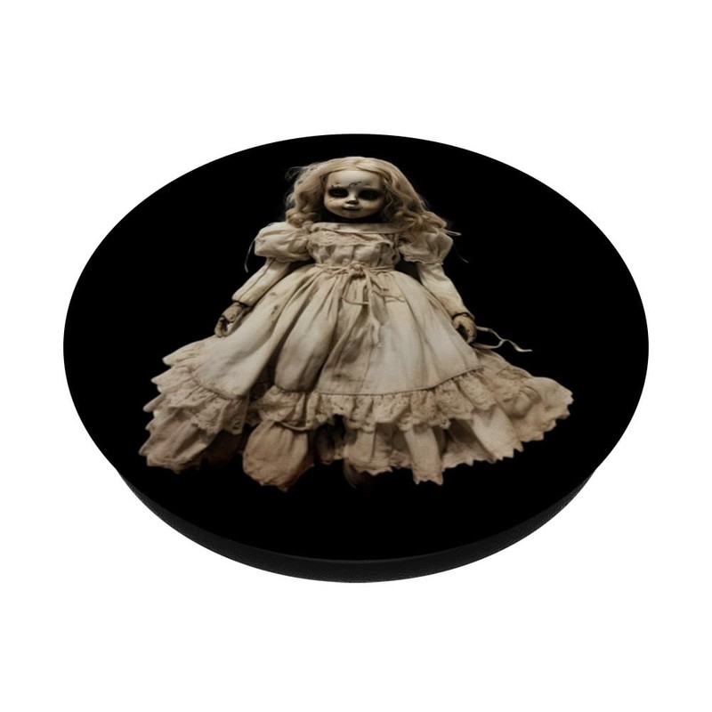 Haunted Gothic Doll with Vintage Elegance and Mystery Art PopSockets Adhesive PopGrip