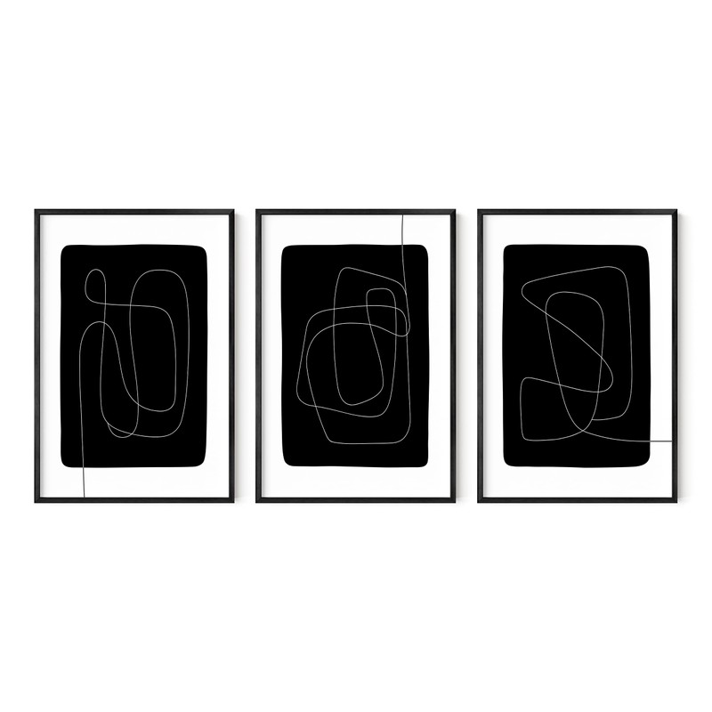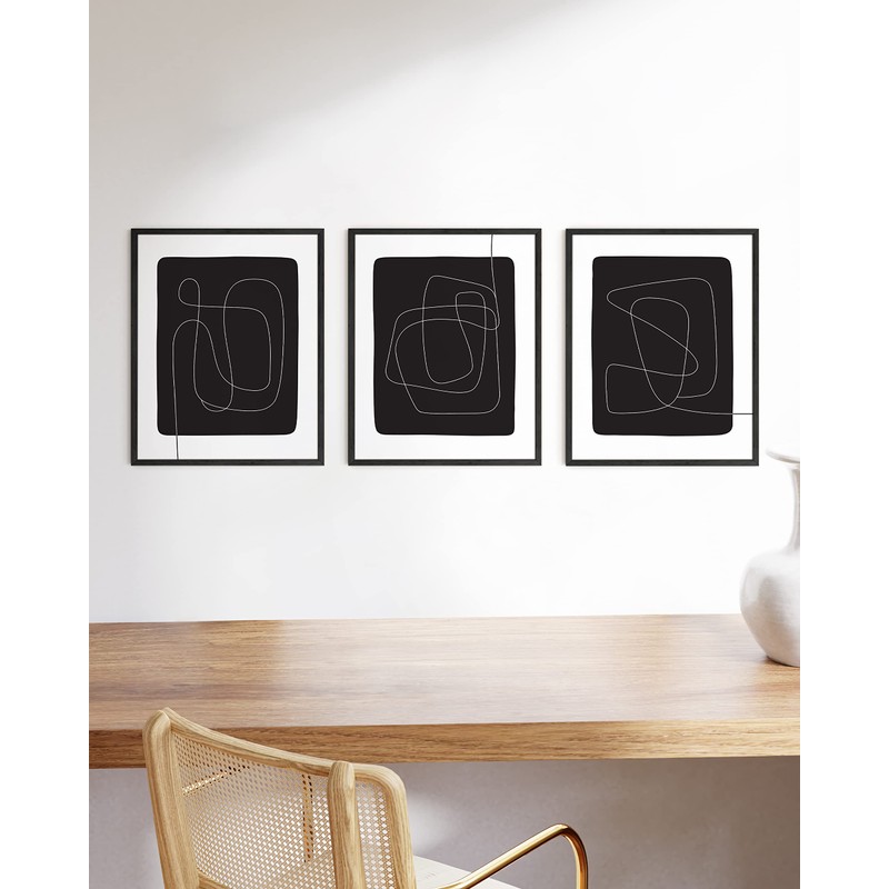 - BLACK AND WHITE MINIMALIST ABSTRACT ART POSTER SET: Spruce up your space with minimalist art and black and white posters for walls. Hanging our modern wall art in any space will transform your bland home into something unique. You can also create a black and white gallery wall by displaying this black art wall decor with other black art pictures for a dramatic and chic vibe.